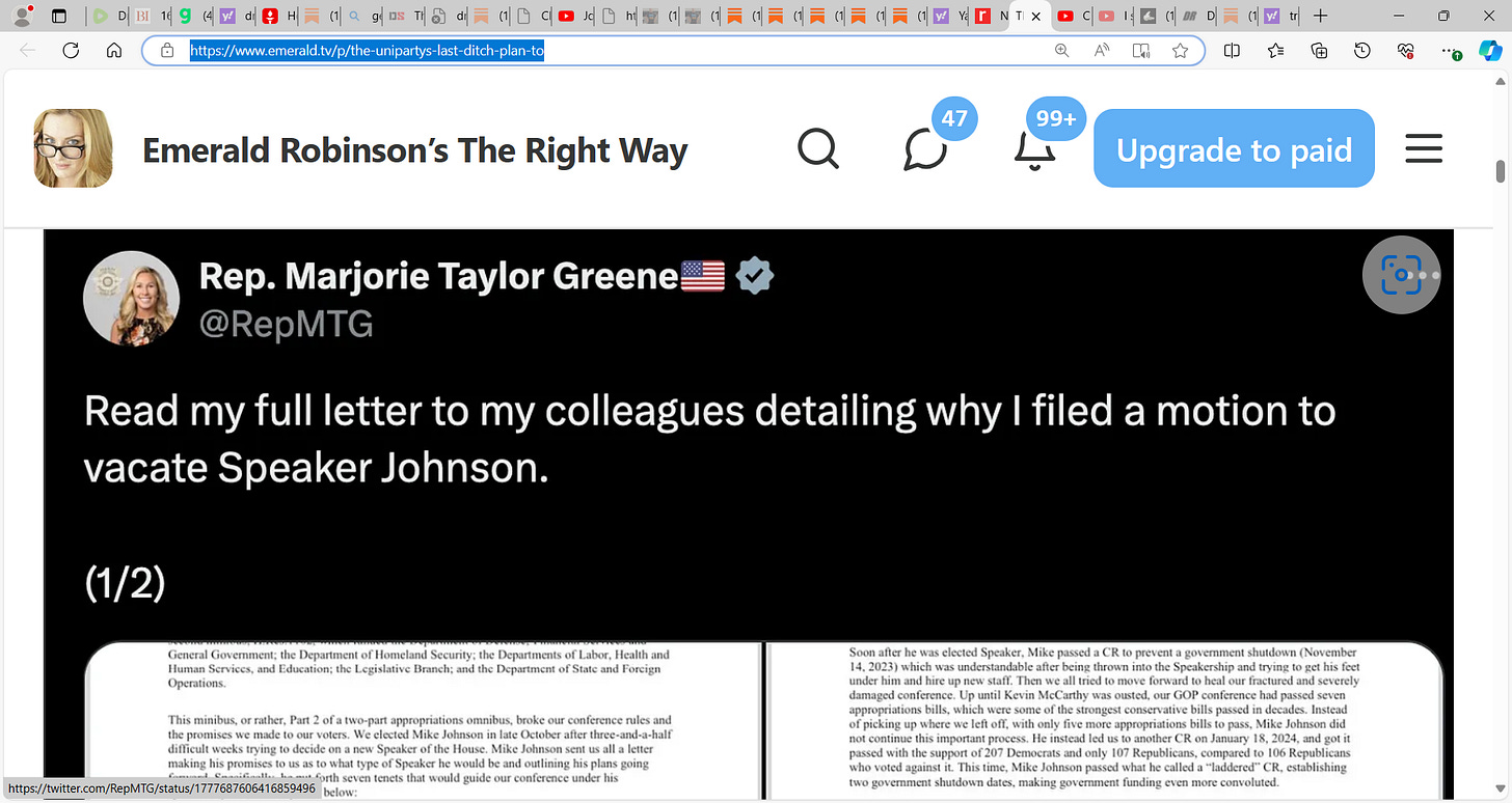 Mike Johnson is not giving us anything to be confident that he is on the side of America...pee wee Herman look...gentle look but he is now coming across as sell out...I will defend him if I felt confident...that Paul Ryan photo worries me.