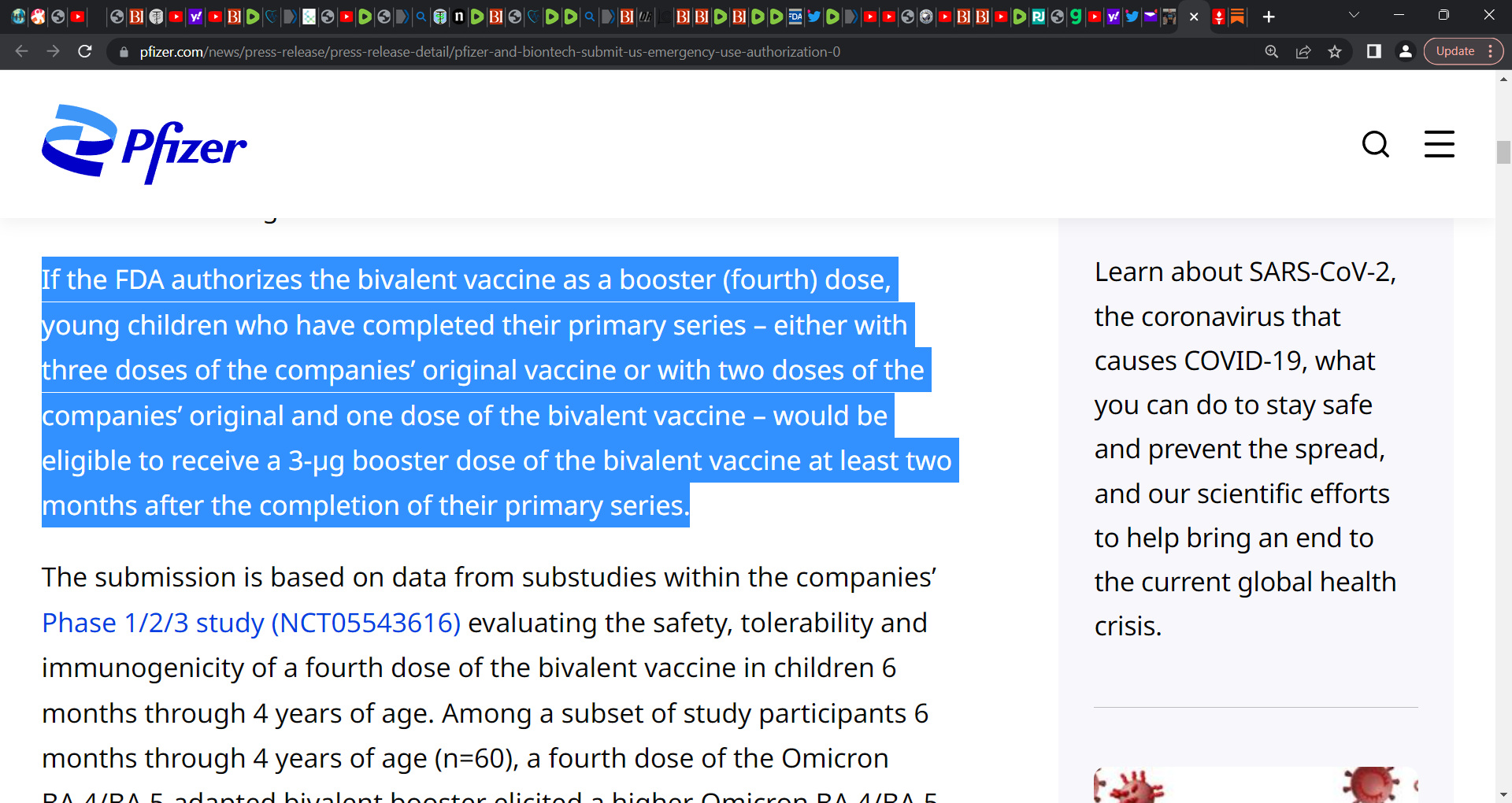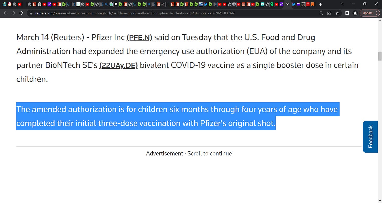 The amended authorization is for children six months through four years of age who have completed their initial three-dose vaccination with Pfizer's original shot; so baby can have mom's vax & theirs