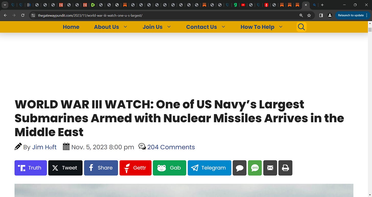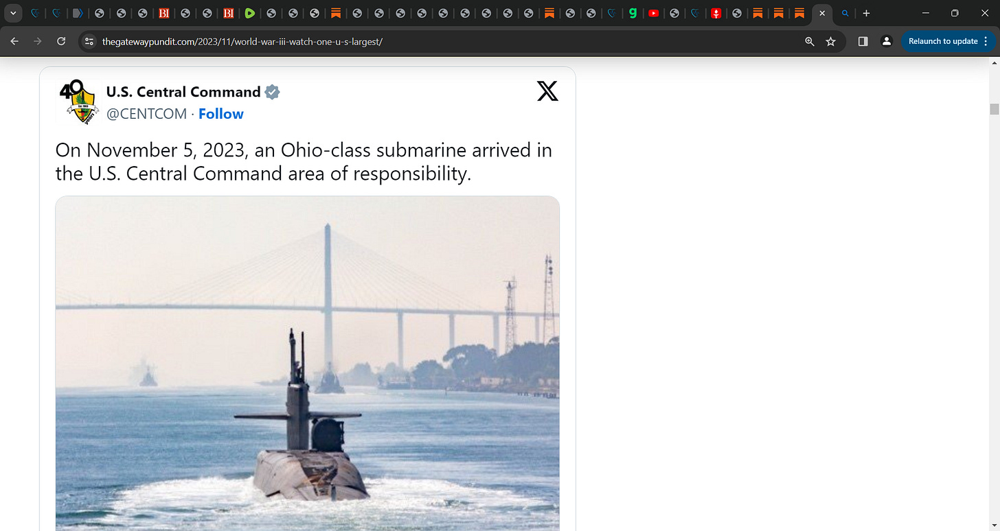 WORLD WAR III?: 'One of US Navy’s Largest Submarines Armed with Nuclear Missiles Arrives in the Middle East'; the Ohio-class, can wipe complete nations off the face of the earth, much nuclear power