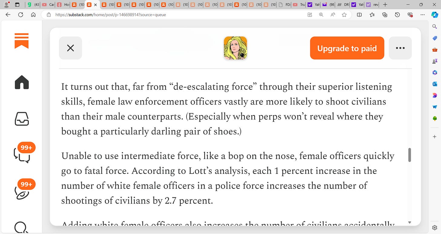 I’m a woman and do NOT agree with the dumbass woman who is in charge of SS. She should be the first woman to step down, just for making the ridiculous rule that the SS must be made up of no less than 30% women???