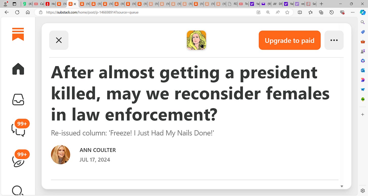 I think Ann makes some valid points and I am not generalizing to all women, but I do think looking on, that the women who were tasked with protecting POTUS Trump were misplaced and goofy and funny and keystone mall types…maybe it was the moment? but in reality, there must be ZERO room for error in these situations…