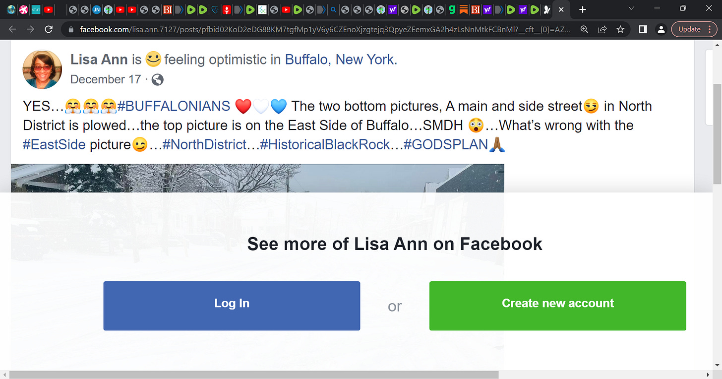 Lastly in the upper middle class suburbs Williamsville Clarence area where I live we didn’t see plows until Monday or Tuesday. Many in our areas without power for 4 days.
