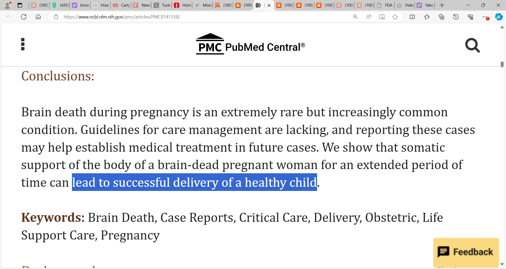 Yes, you can still carry baby in utero if 'brain dead'; 'Delivery of a Healthy Baby from a Brain-Dead Woman After 117 Days of Somatic Support: A Case Report'