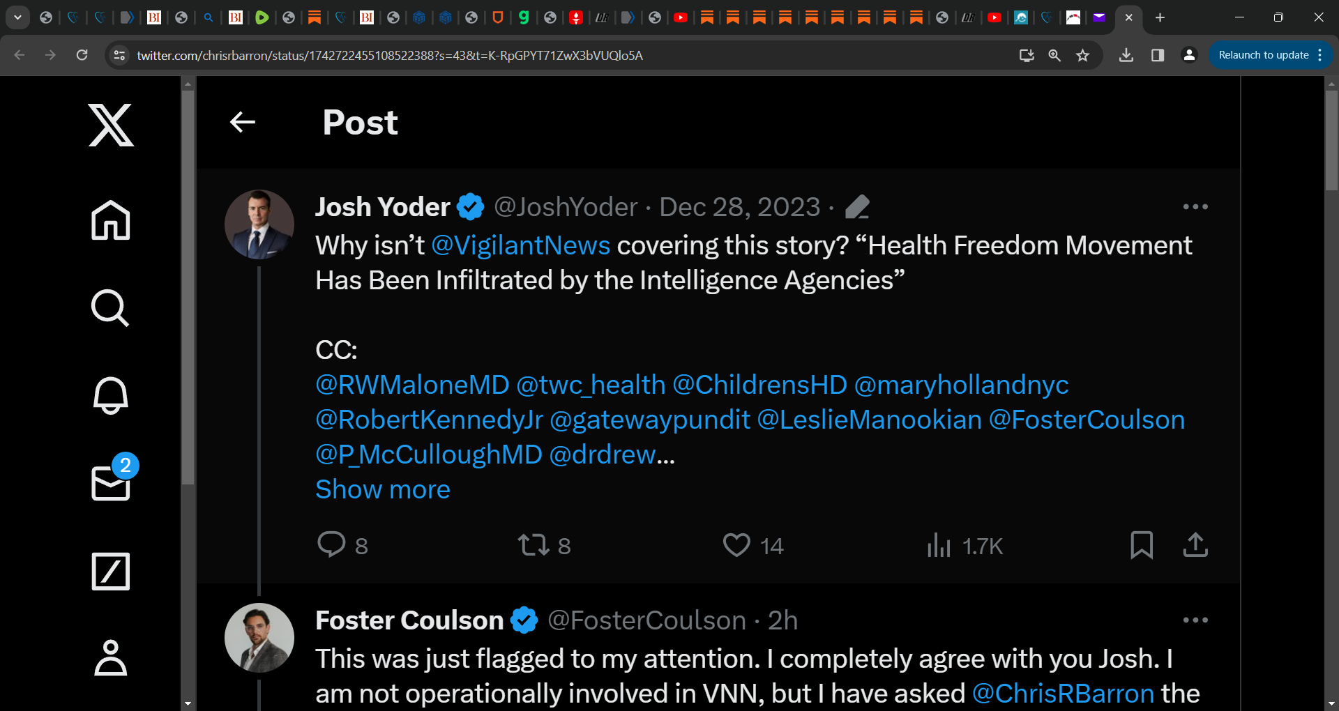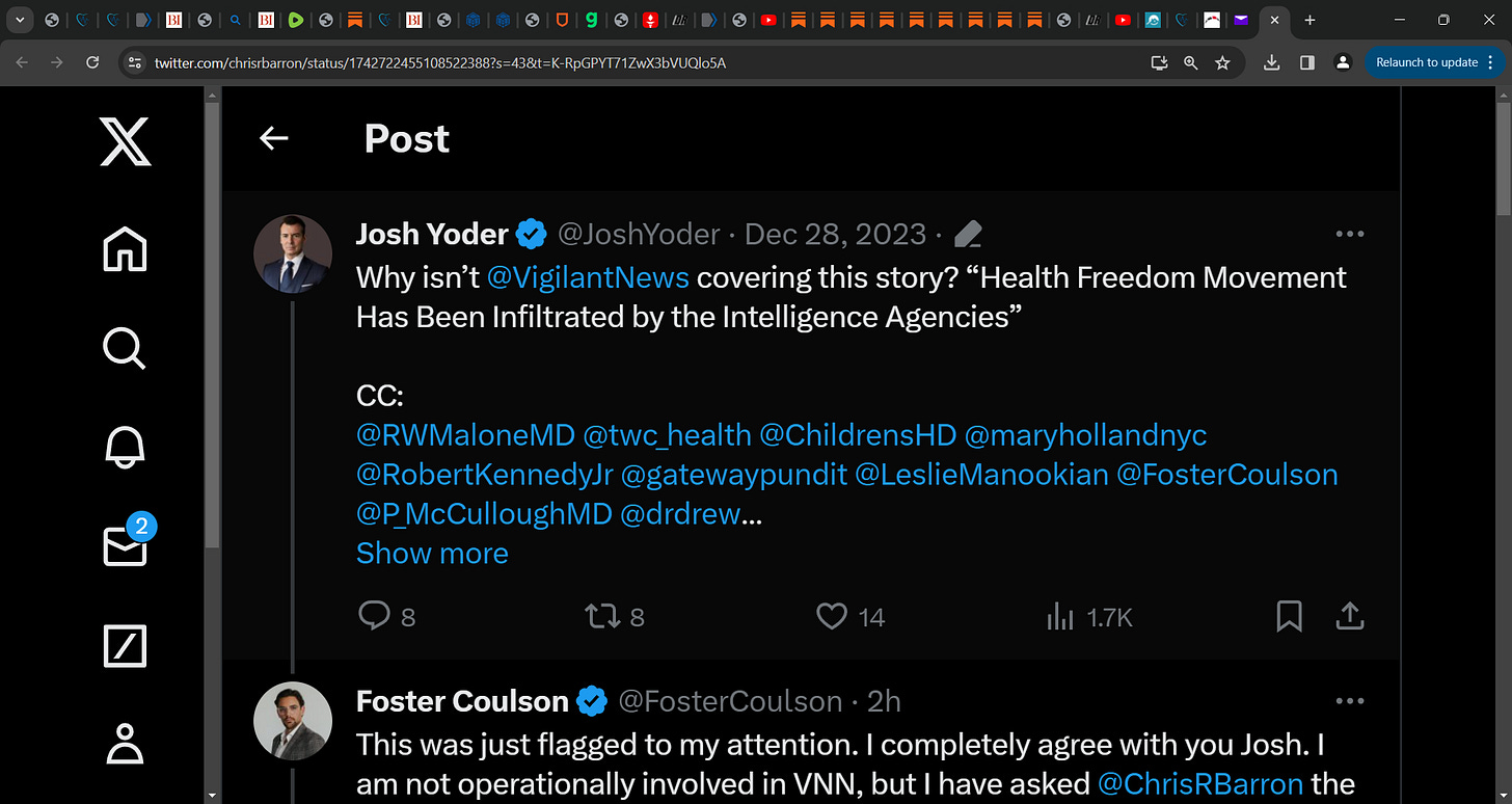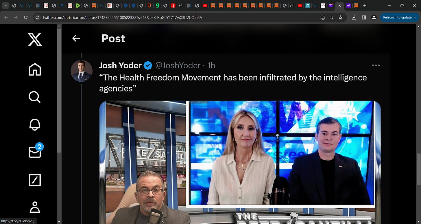 Yoder in this Twitter post is saying that the Freedom Movement is infiltrated by CIA type intelligence assets! Josh, do you think that any of these CIA you referred to are 'in' my 33 Horsemen of COVID